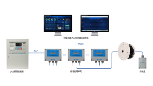 纜式線型感溫火災(zāi)探測(cè)器具有豐富的對(duì)外通訊端口,可通過多種方式與上位機(jī)進(jìn)行配給通訊??梢酝ㄟ^無源觸點(diǎn)上傳公共火警、故障信息;可以直接通過回路總線上傳感溫電纜的分布(或是分區(qū)報(bào)警信息),可通過RS485總線與感溫電纜檢測(cè)系統(tǒng)配接,上傳感溫電纜的各種屬性信息、閾值設(shè)置信息、感溫電纜感知到的現(xiàn)場(chǎng)實(shí)時(shí)溫度信息,在檢測(cè)平臺(tái)上通過圖形化的方式進(jìn)行呈現(xiàn);
